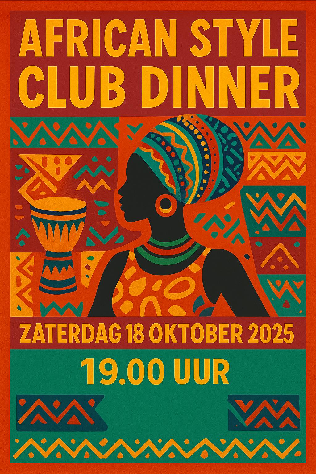 Dit jaar vindt de derde editie van het club dinner plaats op zaterdag 18 oktober. Hiermee sluiten we traditioneel de najaarscompetitie af. Na Europa en Azië staat dit keer de keuken van Afrika garant voor een bijzonder diner! Omdat het dit jaar ook nog (even) lustrumjaar is, hebben we het nóg aantrekkelijker gemaakt om deel te nemen! We gaan wederom aan mooie gedekte tafels genieten van een fantastisch 3-gangen diner.
